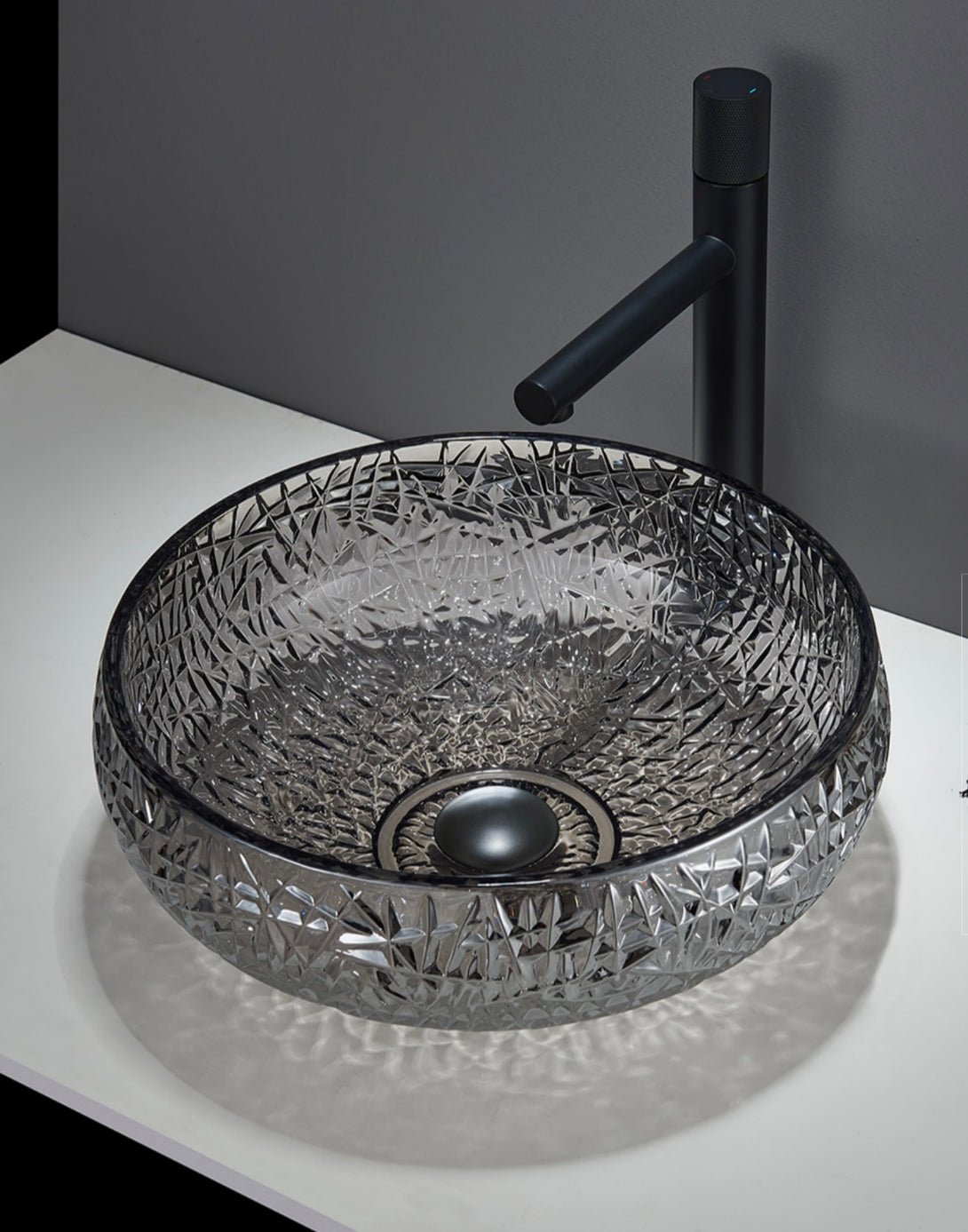 Crafted from premium crystal glass, the Elora basin exudes timeless elegance with its scalloped edges and intricate detailing, inspired by classic antique glassware. Its shallow, refined shape makes it a stunning centerpiece, perfect for adding a touch of sophistication to bathrooms or cloakrooms. Designed to withstand high temperatures, the transparent tempered glass not only provides durability but also creates a mesmerizing visual effect, effortlessly reflecting surrounding colors and textures. Its versatile design complements any interior style, enhancing both modern and traditional spaces with its refined beauty.