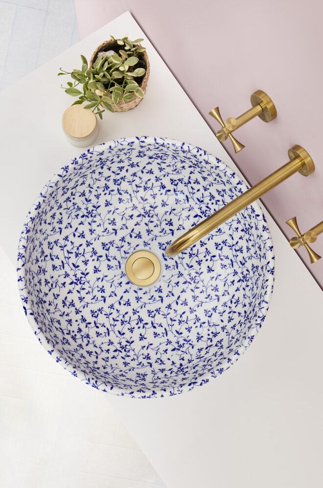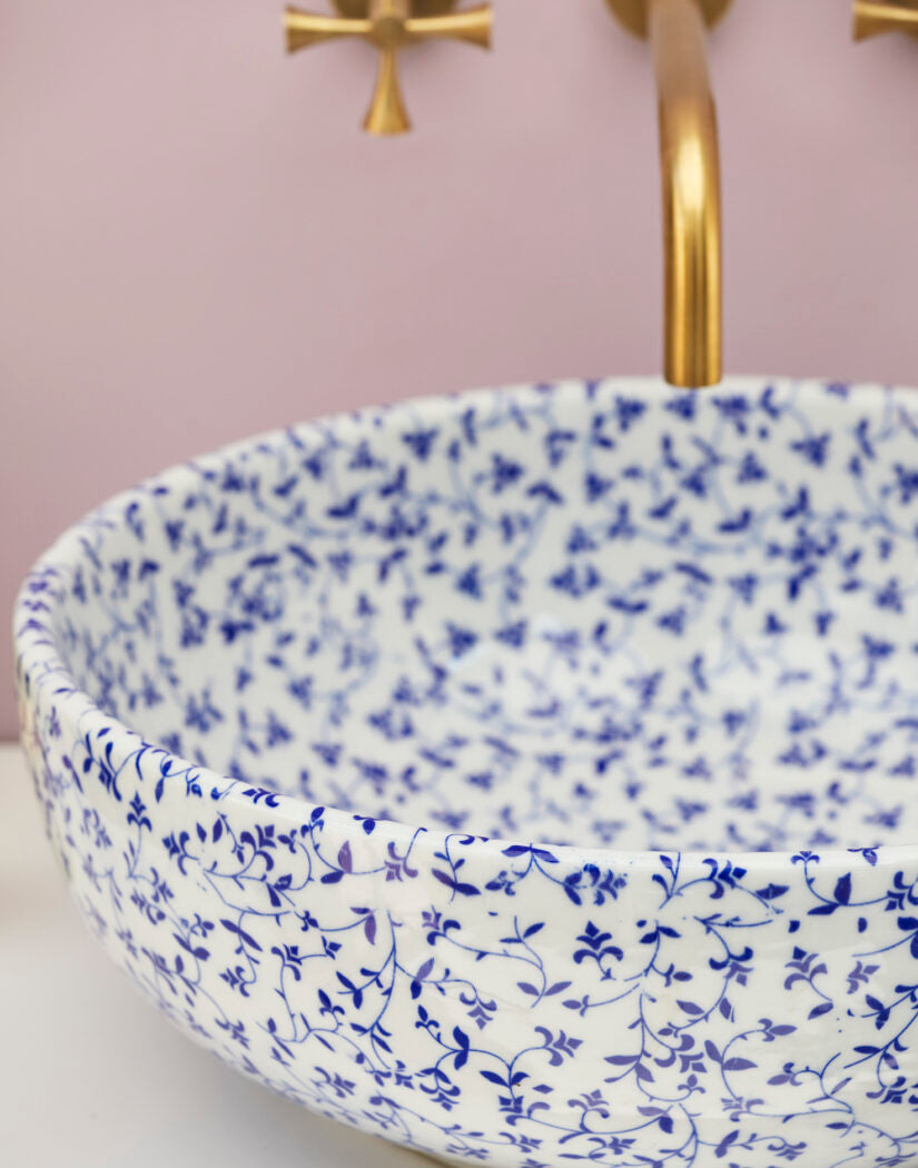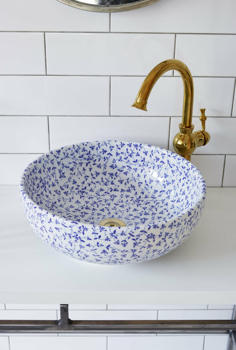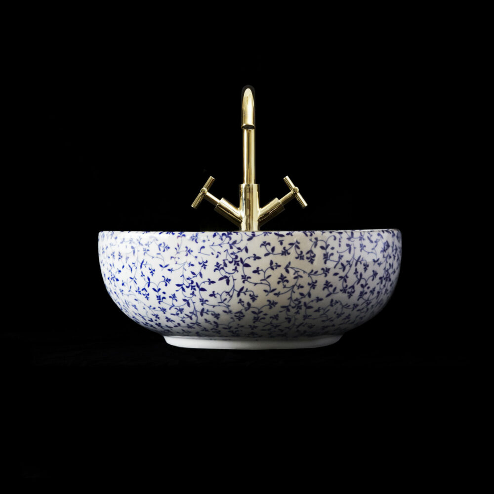 The Juliette countertop basin elegantly pairs timeless royal blue with crisp white in a delightful chinoiserie pattern. Hand-crafted from fine porcelain, it features a traditional floral design that adds a touch of classic charm. The Juliette basin infuses your bathroom with a refreshing countryside vibe while seamlessly complementing contemporary interiors. Its versatile design has made it a perennial favorite, effortlessly combining sophistication with practicality.